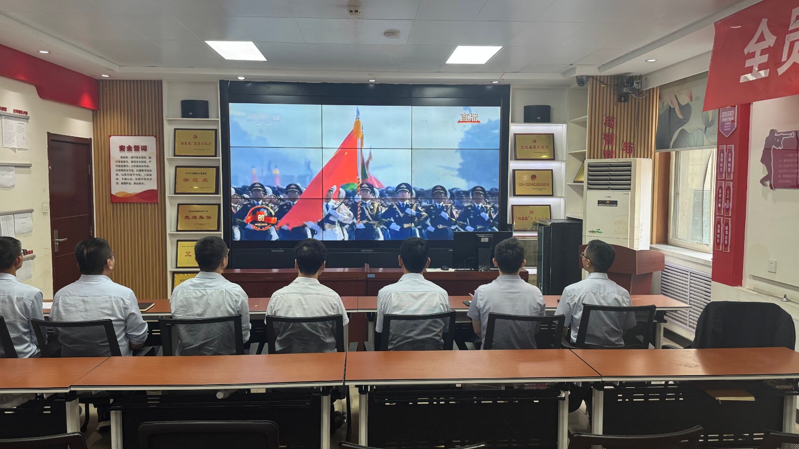 歷史燭照未來(lái),精神永續(xù)傳承。為深切緬懷在抗日戰(zhàn)爭(zhēng)中英勇獻(xiàn)身的革命先烈,大力弘揚(yáng)偉大的抗戰(zhàn)精神,引導(dǎo)全體黨員、職工銘記光輝歷史、堅(jiān)定理想信念、強(qiáng)化責(zé)任擔(dān)當(dāng),9月3日,機(jī)運(yùn)工區(qū)黨支部組織開(kāi)展了“銘記歷史偉業(yè),傳承紅色基因”主題黨日活動(dòng),組織全體黨員集中觀看紀(jì)念中國(guó)人民抗日戰(zhàn)爭(zhēng)暨世界反法西斯戰(zhàn)爭(zhēng)勝利80周年閱兵儀式現(xiàn)場(chǎng)直播。上午九時(shí)整,機(jī)運(yùn)工區(qū)全體黨懷著無(wú)比崇敬與激動(dòng)的心情,目光齊聚屏幕。伴隨著激昂雄壯的國(guó)歌奏響,鮮艷的五星紅旗在天安門廣場(chǎng)冉冉升起,大家心潮澎湃,肅然起敬。隨后,規(guī)模宏大、氣勢(shì)磅礴的閱兵式正式開(kāi)始。屏幕上,一個(gè)個(gè)整齊劃一、威武雄壯的徒步方隊(duì),邁著鏗鏘有力、撼人心魄的步伐走過(guò)檢閱臺(tái),堅(jiān)毅的眼神、挺拔的身姿,充分展現(xiàn)了新時(shí)代軍人聽(tīng)黨指揮的忠誠(chéng)品格和能打勝仗的過(guò)硬本領(lǐng);一列列代表著國(guó)家科技實(shí)力與國(guó)防現(xiàn)代化建設(shè)最新成果的裝備方隊(duì),鐵流滾滾,氣勢(shì)如虹,尖端武器依次亮相,彰顯了捍衛(wèi)國(guó)家主權(quán)、安全、發(fā)展利益的堅(jiān)定決心與強(qiáng)大能力;雄鷹呼嘯,劃破長(zhǎng)空,戰(zhàn)機(jī)編隊(duì)以精準(zhǔn)的隊(duì)形和磅礴的氣勢(shì)接受檢閱,描繪出壯美的藍(lán)天畫卷,宣示著捍衛(wèi)國(guó)家領(lǐng)空安全的鋼鐵意志。整個(gè)閱兵過(guò)程,秩序井然、威武雄壯、氣勢(shì)恢宏,生動(dòng)詮釋了人民軍隊(duì)“聽(tīng)黨指揮、能打勝仗、作風(fēng)優(yōu)良”的強(qiáng)軍目標(biāo),全方位展示了在黨的堅(jiān)強(qiáng)領(lǐng)導(dǎo)下,國(guó)家日益強(qiáng)大的綜合國(guó)力和維護(hù)世界和平的堅(jiān)定信念。屏幕前,黨員們?nèi)褙炞?,無(wú)不被這震撼人心的場(chǎng)面所感染,民族自豪感與榮譽(yù)感油然而生,現(xiàn)場(chǎng)不時(shí)響起由衷的贊嘆和熱烈的掌聲。通過(guò)本次“銘記歷史偉業(yè),傳承紅色基因”主題黨日活動(dòng),機(jī)運(yùn)工區(qū)黨支部全體黨員經(jīng)歷了一次深刻的精神淬煉與思想升華。大家的歷史使命感、民族自豪感、崗位責(zé)任感得到顯著增強(qiáng),紛紛表示以更加飽滿昂揚(yáng)的精神狀態(tài)、更加求真務(wù)實(shí)的工作作風(fēng)、更加開(kāi)拓創(chuàng)新的進(jìn)取意識(shí),恪盡職守,銳意進(jìn)取,全力以赴保障原煤運(yùn)輸安全高效,為工區(qū)及公司的持續(xù)高質(zhì)量發(fā)展貢獻(xiàn)全部力量!